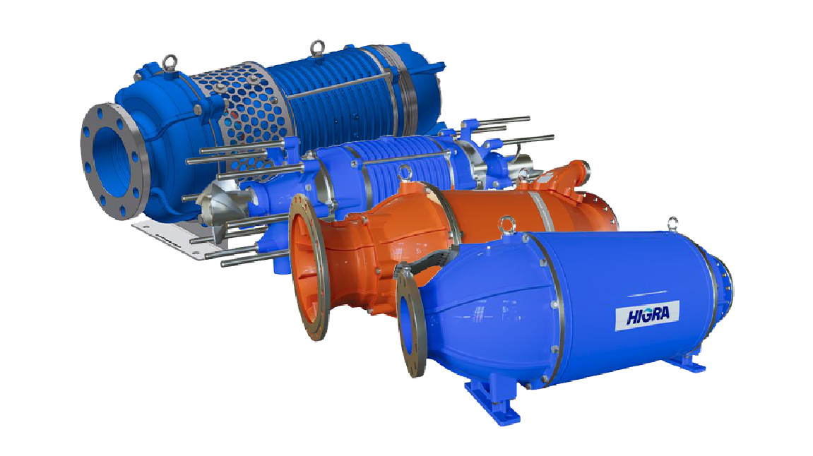 las bombas higra operan dentro y fuera del agua. dada su geometría única en la que el flujo de agua es admitido a través de una succión axial bridada, pasando por un impusor centrifugo a lo largo del motor. este sistema garantiza el intercambio térmico, un bajo nivel de ruido, versatilidad de la instalación, bajo mantenimiento y la eficiencia hidro energética.
